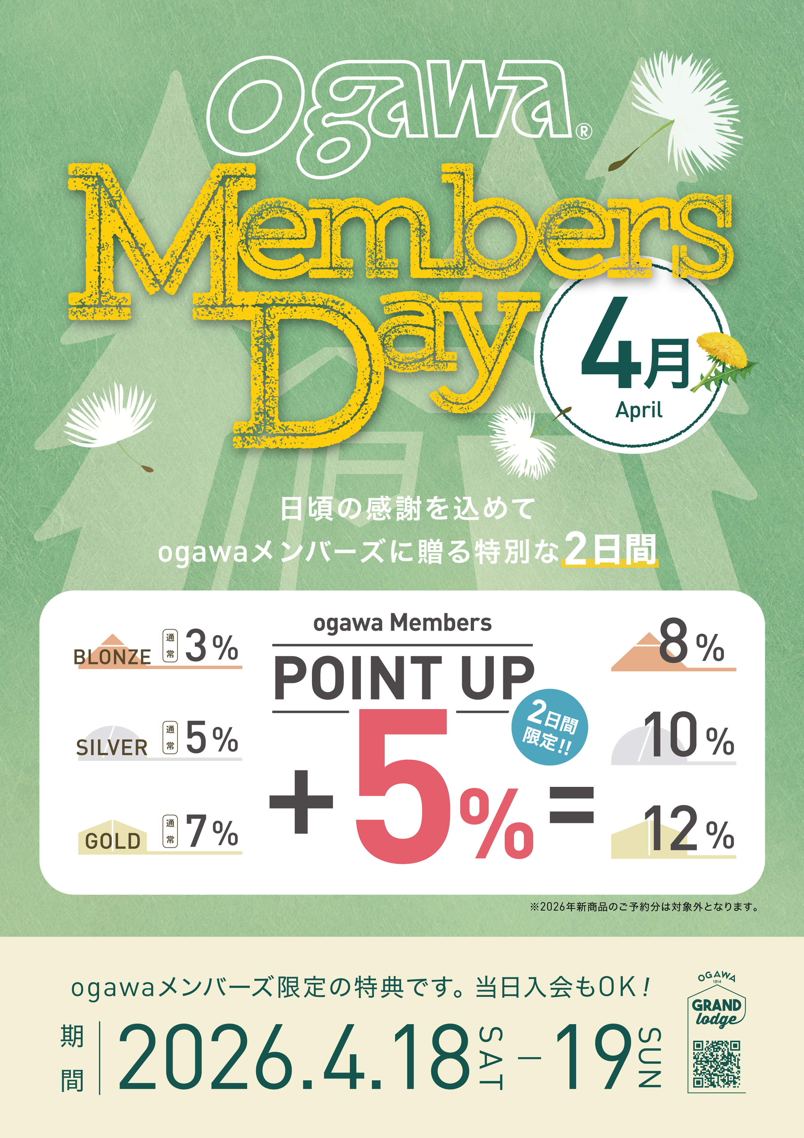 日頃の感謝を込めて毎月第3土曜日・日曜日に『ogawa MENBERS DAY』を設け、